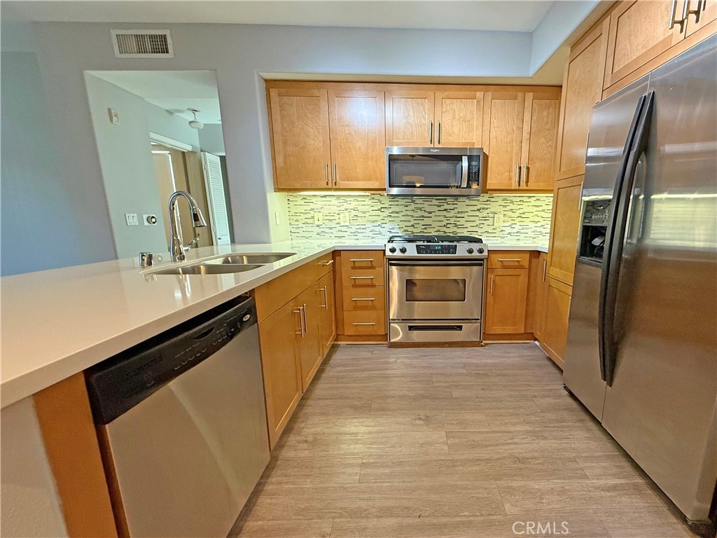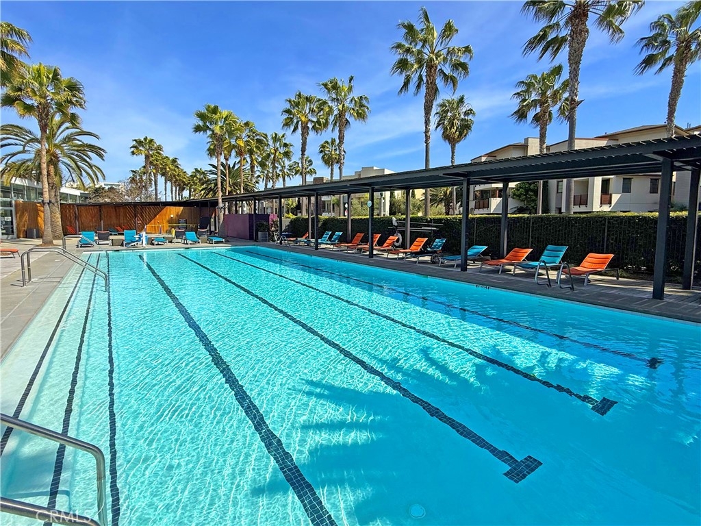 Reduced Price! Unit patio faces Discovery Creek. Situated in a highly desirable Playa Vista community with free access to two gyms, with one of them open 24 hrs, 2 junior Olympic size pools and pool for kids, jacuzzi, 2 soccer fields, multiple tennis courts, a basketball court, 2 assigned subterranean gated parking spaces, storage room for bikes, Luxe lockers for secure package delivery. Also included at no extra charge: Fiber-Optic fast Internet, basic TV package, home alarm service and Patrol by Playa Vista Security. The condo is located on the first level (owner loved that you could ride your bicycle right into the unit) with a balcony and features an updated kitchen with oak cabinets, and quartz countertops!. Two primary bedrooms with full bathrooms, a newer stackable washer and dryer (2024) in the closet space, double sinks, 2 walk-in closets. This condo offers a wealth of amenities and a vibrant neighborhood with parks, shops, dining, and entertainment options just moments away. Around the corner from Playa Vista's retail and restaurants. Only blocks away from the Playa Vista Elementary School & Library. Nearby, Runway at Playa Vista is home to Whole Foods, Cinemark Movie Theater, restaurants, shops & more! Includes access to the state of the art Resort and the CenterPoint Club's gym & pool. Head to The CenterPointe Club, the community's first 26,000 sq. ft. resident social and recreational gathering place in Playa Vista. Pools and a huge deck with swanky cabanas and courtyard make The CenterPointe Club the perfect afternoon getaway. Plus, the club features a fitness center, screening room, a lounge with outdoor patio, business center and conference room. The Great Room is an additional club amenity perfect for parties and community events. Access to a catering kitchen and flexible space for guests makes it the ideal venue to entertain.