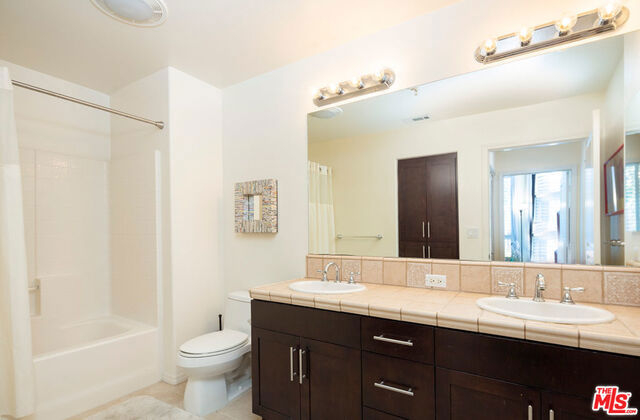 Awesome value meets attractive and smart living spaces in this stylish, single-level 2 bedroom condo in Promenade. Enter to a bright, West-facing great room with nearly a full wall of windows. To the left are newer built-ins with TV area and on the right is another living area with adjacent dining area. Watch TV or chat with your guests from open kitchen featuring a breakfast bar, granite countertops, mosaic backsplash, stainless steel appliances & Travertine tile floors. Large balcony, perfect for lounging or al fresco dining, spans nearly the width of the entire unit. Two bedrooms & bathrooms on opposite ends is great for privacy. Both bathrooms have double sinks and both bedrooms have walk-in closets. Quiet and convenient location within the Playa Vista community. Just a block from Concert Park and shops and short distance from numerous other parks, The Resort, Centerpointe Club, PV Elementary School, community library, Runway shopping area, Whole Foods, and Cinemark movie theater.