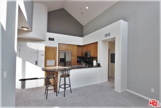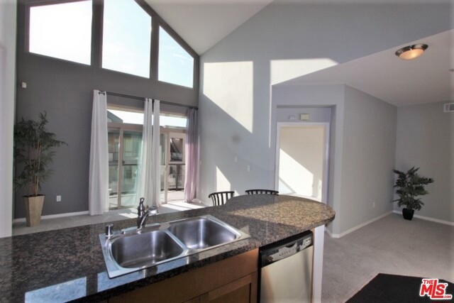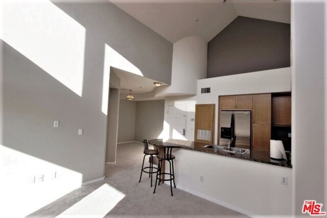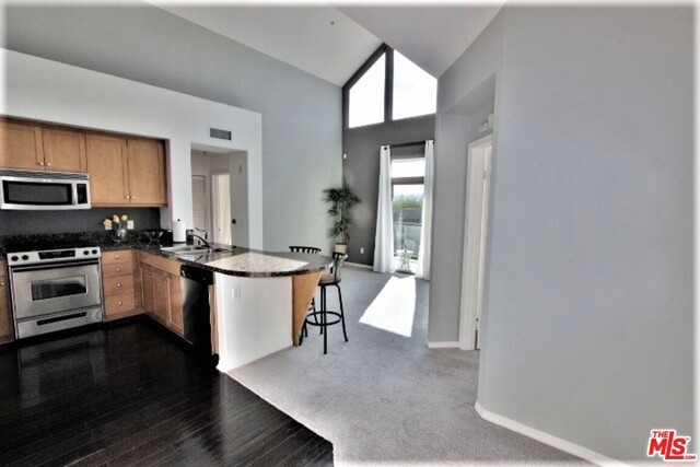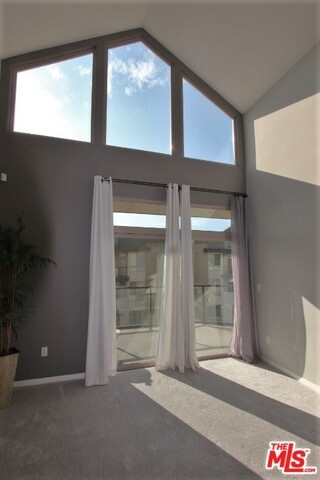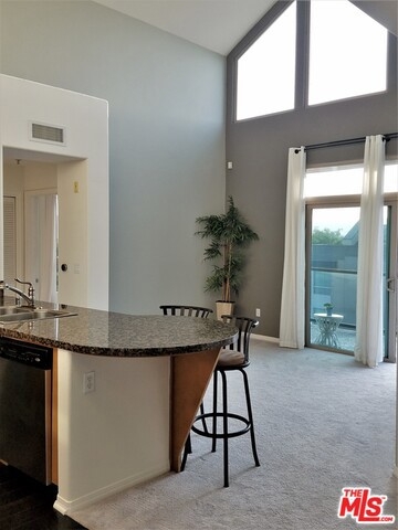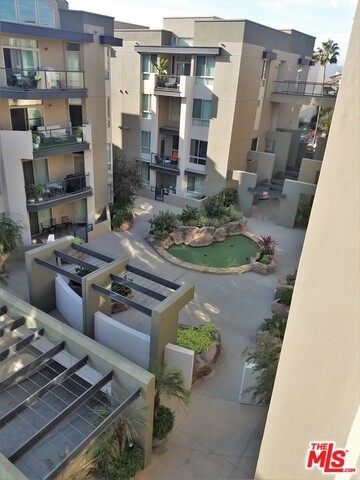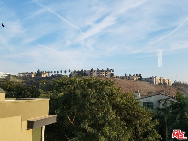 Spectacular Top Floor 2Bd + 2Bath condo with high ceilings and windows that allow rooms to bath in light, and showcase brilliant open skies above living room, kitchen and dining rooms. From this premiere SW-facing end unit, you'll enjoy bluff and tree top views, and the glorious glow of evening sunsets throughout. An end unit sharing only one wall connection wall. Bedrooms are situated on either side of living room, and have access to large scenic balcony sitting high above courtyard and fountain. Features upscale kitchen, eat at bar, washer and dryer, central heat/air, and two large walk in closets. The unit comes with two separate parking spaces, one with outlet for an electric vehicle. Centrally located just ½ a block from Centerpoint Club, and Concert Park shops, and includes access to all the entertainment and amenities that Playa Vista has to offer including pools, spa, clubhouse, fitness center, theatres, and dining