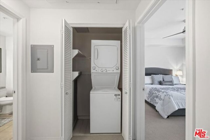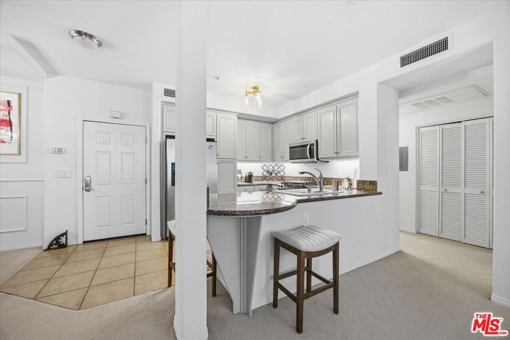 Tucked into the heart of Playa Vista, this beautifully appointed one-bedroom home at the Promenade tells a story of comfort, connection, and effortless living. From the moment you step inside, the open-concept design invites you to settle in a light-filled living space where the kitchen, dining area, and living room flow together seamlessly. A thoughtfully integrated built-in Murphy bed and office area creates a natural balance between productivity and relaxation, making everyday life feel both functional and refined. The kitchen shines with sleek granite countertops, newer appliances, and a welcoming breakfast area that sets the stage for morning coffee or evenings with friends.Beyond the living space, your private patio offers a peaceful retreat, the perfect spot to unwind after a busy day. The spacious bedroom sits just across the hall, complete with patio access and a newly designed walk-in closet, while the spa-inspired bathroom features a dual vanity and a deep soaking tub designed for true relaxation. In-unit laundry and two tandem parking spaces add everyday ease. Just steps from Concert Park, vibrant shops, and local dining, and with access to the Centerpointe Club and Resort Fitness Center, this home places you at the center of Playa Vista's most sought-after lifestyle where convenience, community, and comfort come together beautifully.