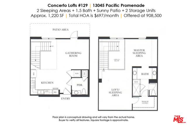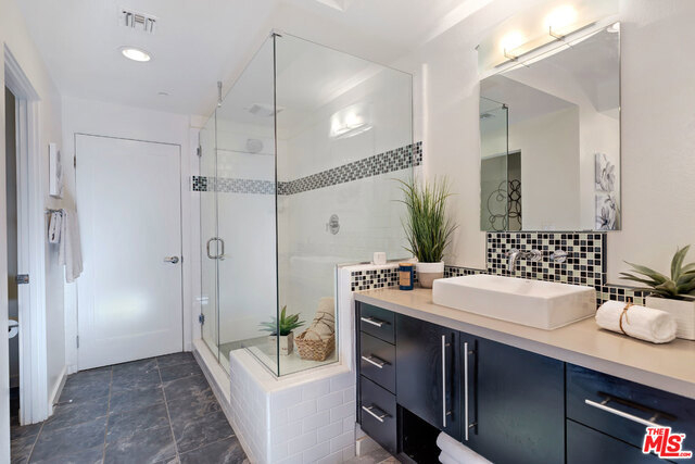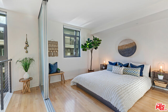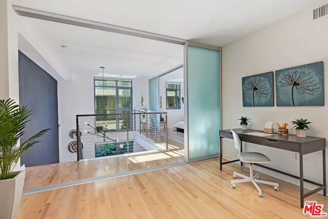Home at last…imagine waking up in this irresistibly chic abode that blends an airy industrial loft-like vibe w/ the peacefulness of an urban garden. A private entrance brings you home through a magical oversized patio. Once inside, 19' high ceilings w/ double-height floor-to-ceiling windows give the open-plan living space a dramatic feel & an abundance of natural light. Downstairs, a contemporary kitchen + living space form the heart of the home. West-facing windows & French doors overlook the peaceful patio-a perfect spot to lounge surrounded by lush greenery. Upstairs are two full-sized rooms w/ light-colored maple floors, a generously-sized master bath w/ dual vanities + a huge walk-in closet. Custom sliding glass panels can be left open or enclosed for 2 separate sleeping areas. Smart home features include Philips Hue lighting & Ecobee thermostat. Privacy, convenience, and style-live your best life in this stunning home right in the center of Playa Vista's Concert Park District.