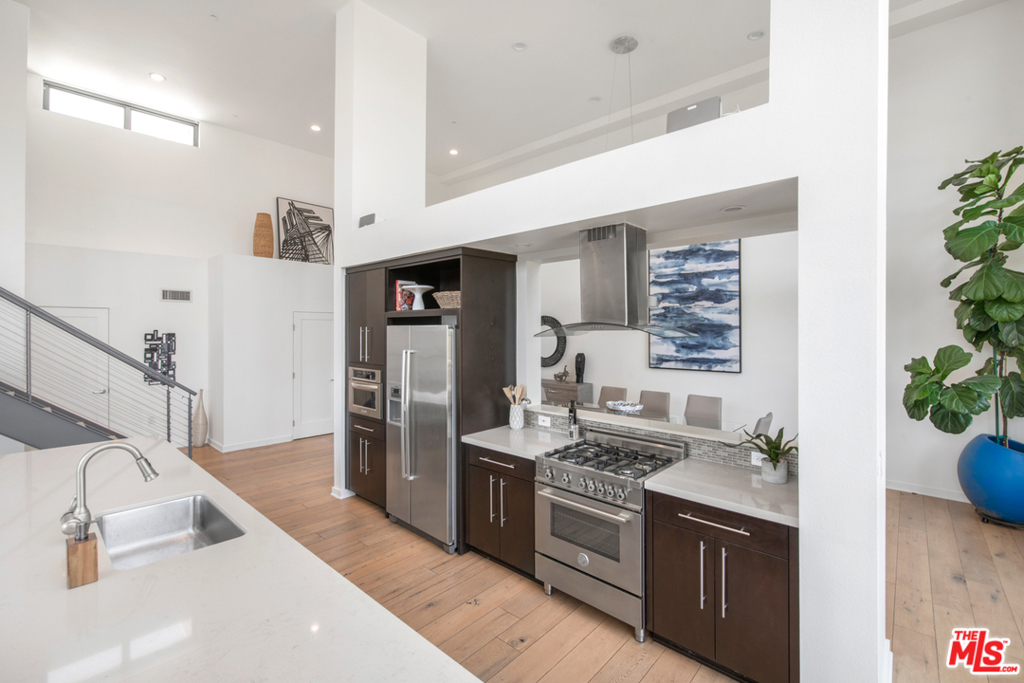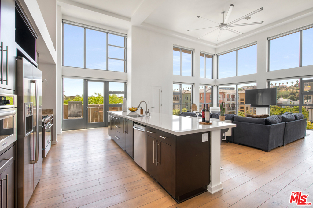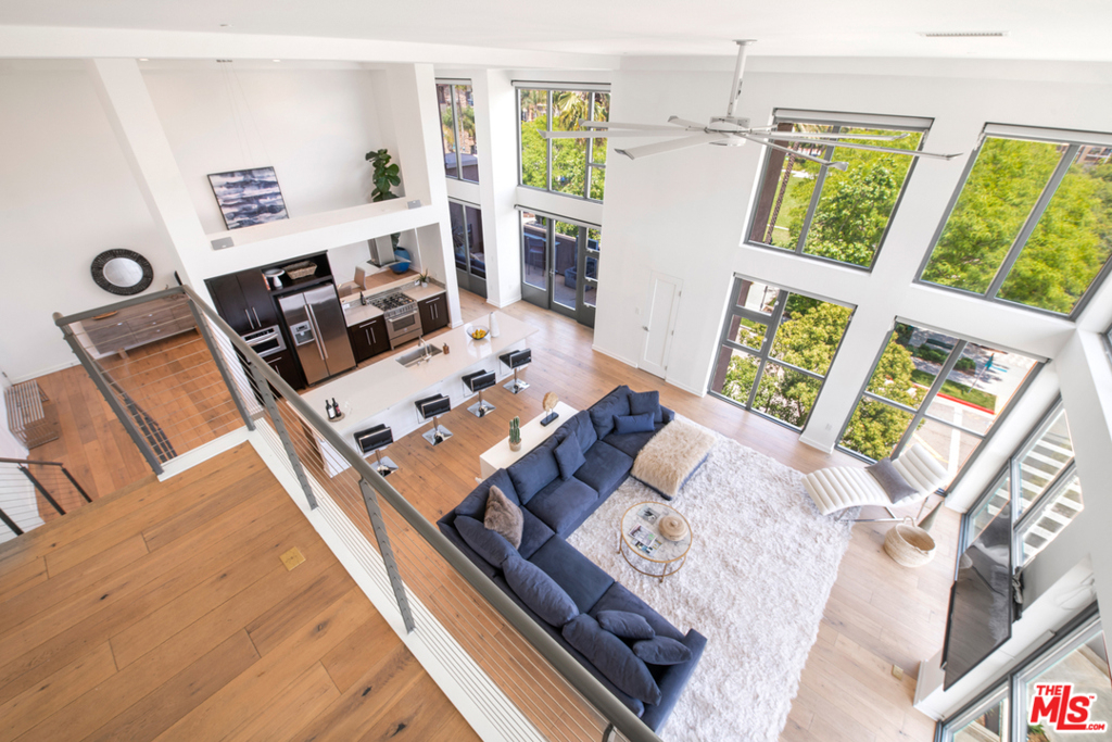 We present you with the Crown Jewel of Playa Vista. A one of a kind, exclusive and private 2 story penthouse loft w/ panoramic views of the bluffs, Concert Park & the mountains. This monster sized loft takes up 2600 sq ft of living space w/ 2 generously sized bedrooms, 2.5 baths & an office/bonus area perfect for working from home. Open floor plan w/ a chefs kitchen as the focal point & a long island for entertaining. Double height floor to ceiling windows and nearly 20 ft soaring high ceilings. Light wide planked hardwood floors throughout. Master suite on the 2nd floor with plenty of closet space, walk in shower & double sinks in master bath. 2 spacious sun drenched balconies perfect for gardening, grilling, sun bathing or just relaxing. Fireplace in the balcony facing concert park. Remote controlled window shades. Unit comes w/ 2 non-tandem parking spaces that are arguably the best in the building next to the elevator & extra storage above the parking. This is a true stunner!
