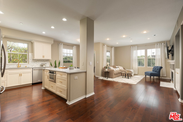 Fall in love with this exclusive top-level, corner location home in Playa Vista overlooking The CenterPointe Club and swimming pool! Extremely quiet & private, light and bright. Catch stunning sunsets over the Pacific Ocean and Marina del Rey, with southwest sun exposure. The home is in the coveted Esplanade (Spanish-Mediterranean style) building, situated on beautiful Seawalk Drive and Discovery Creek. Major upgrades were recently added to the kitchen and living room, including gray quartz counter-tops, Calacatta Marble backsplash, white shaker cabinets, all-new stainless steel appliances and gold hardware & fixtures. Super chic! Just two blocks from Concert Park and Concert Park Shoppes, including restaurants, bank, dry cleaner & grocery store. Non-tandem, separate assigned parking spaces. The best unit in the building with no neighbors above! With the lowest building HOA in all of Playa Vista, this is one of the best homes listed under $1 Million! Includes separate storage space!