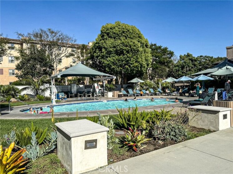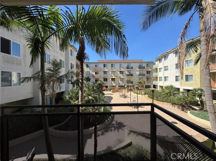 Welcome to Crescent Walk in the heart of Playa Vista. This well-located 1-bedroom, 1-bath residence offers a bright, open layout with fresh interior paint throughout and brand-new blinds, creating a clean and move-in-ready feel. The living area opens to a private, elevated balcony overlooking palm trees and a tranquil courtyard with features including a fountain, fireplace, and multiple seating areas—offering a peaceful setting with the added benefit of second-floor privacy. The kitchen features updated quartz countertops and a breakfast bar, while offering an excellent opportunity for future customization with its original cabinetry and appliances. Additional highlights include a recently upgraded central A/C system (approx. 1 year old), in-unit laundry, and a spacious bedroom. The bedroom provides a calm, inviting retreat, highlighted by a large window that welcomes in natural light and enhances the home’s quiet, serene ambiance, along with generous closet space. A rare and valuable feature—this unit includes two non-tandem parking spaces: one conveniently located near the elevator with no adjacent car on one side, and another semi-private space offering a garage-like feel without a door. Ideally situated just steps from the elevator, this home also benefits from Playa Vista’s unmatched lifestyle. The property is part of two HOAs, with the second providing access to the highly sought-after CenterPointe Club (directly across the street) and The Resort—offering pools, fitness centers, complimentary classes, and access to numerous parks, sports courts, and community events. Enjoy coastal breezes, beautifully maintained grounds, and a premier Westside location near shopping, dining, and entertainment. A fantastic opportunity to own in one of Playa Vista’s most desirable communities. Note: Photos 2,5, 9,11,21, and 27 have been digitally altered to provide a visual with furniture and decor. As required by California Law, the original, unaltered image can be viewed next to the digitally altered image.