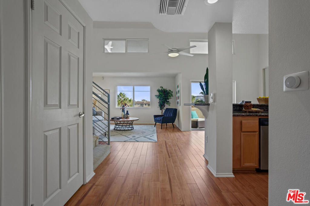 Come experience the best view in all of Playa Vista in this sun soaked 1 bed, 2 bath corner unit, penthouse loft. The front door opens into the foyer w/ a generous powder room to the left & a spacious kitchen to the right. Black granite counters, SS appliances & a large pantry are just some of the features in this kitchen. The wrap around bar height counter is the perfect gathering place for guests w/ the open concept living/dining area just behind it. A sliding glass door offers a sneak peak of the gorgeous view just outside on the balcony where you'll see the sparkling Centerpointe Club pool, listen to the LMU church bells & take in the snow capped mountains. The upstairs loft offers hardwood floors, a large closet and full bath. This well maintained beauty is a must see property with tall ceilings, open plan and spectacular views! Playa Vista amenities include cable, hi-speed internet, an Olympic size pool, fitness center, Centerpointe Club/Resort access, local shuttle, & 29 parks.