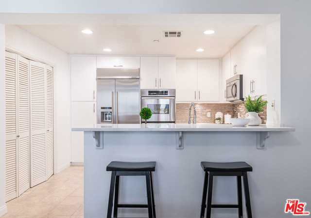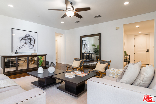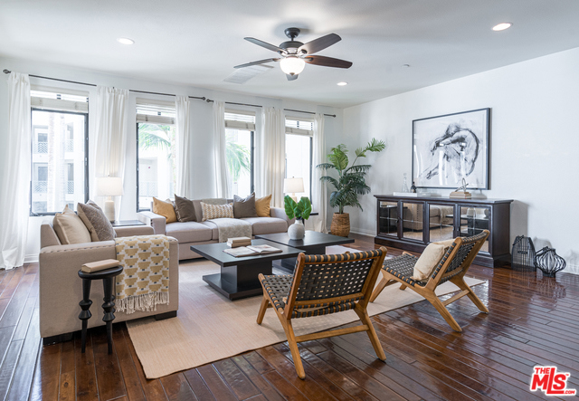 Welcome to the chic art deco Metro building! This beautiful single level 2 bedroom 2 bath condo with good size office nook is located in the heart of Silicon beach. It's a quiet courtyard facing corner unit with a spacious open floor plan that features a formal entry, living room with a gas fireplace and rich dark hardwood floors. Recently renovated kitchen boasts new cabinets, quartz counter tops and elegant glass/stone back splash. The unit offers two patios, one off of the dining room perfect for dining alfresco and other just off the master suite. Pristine master amazes with its size and has enough room for a sitting area or home office and offers en-suite bathroom with convenient dual vanity and travertine floors; a custom build walk- in closet. Tandem parking space #207. Live the Playa Vista life style! Enjoy the state of the art Resort - fitness center, Center Pointe Club.