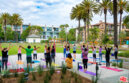 Live life to the fullest in this classic townhouse with a modern feel, perfect for entertaining or enjoying peaceful downtime! A private entrance welcomes guests inside light and bright adjoining living and dining rooms, which flow together effortlessly thanks to high ceilings, hardwood floors, crown molding, and stately bay windows. A cook's kitchen, complete with pro-style range, granite counters, and custom cabinets, makes hosting easy, while the fireplace in the den beckons for cozy sit-downs. Terrace access offers a serene spot to soak up the courtyard vibe of the quiet street outside. Generous proportions continue upstairs in three bedrooms, including a master suite retreat with extra-tall ceilings, treetop views, lux marble bath, and walk-in closet. An attached two-car garage with bonus room ensures ample storage, or convert it into an office/studio for future creative endeavors. Modern living meets traditional charm, it's the best of all worlds in this gracious Playa Vista gem.