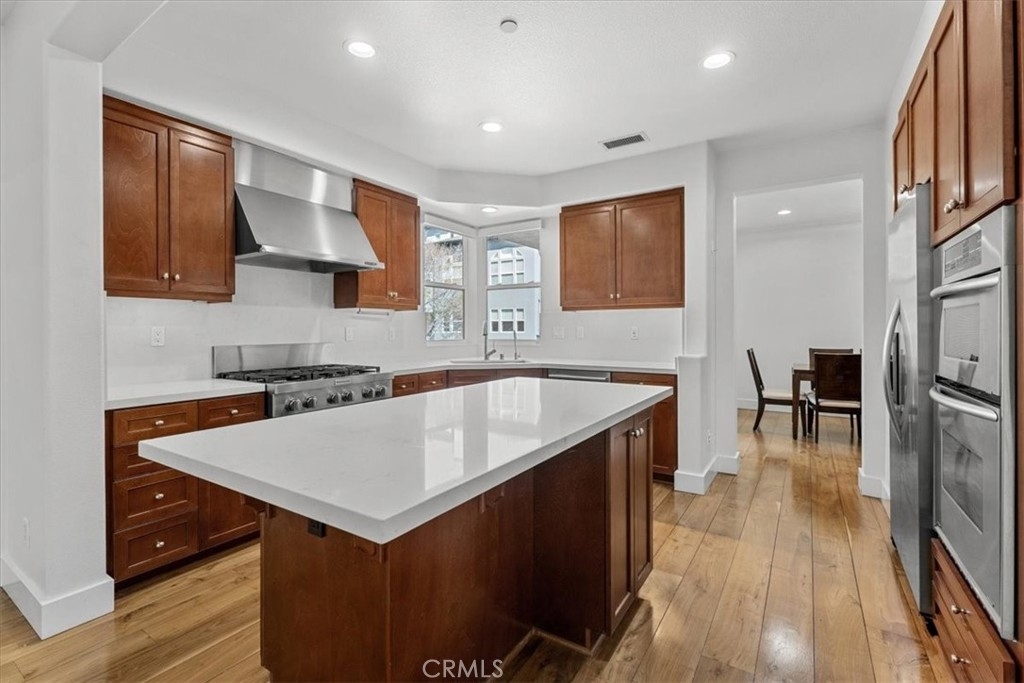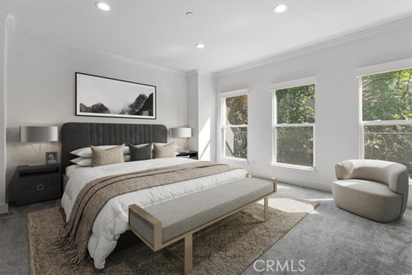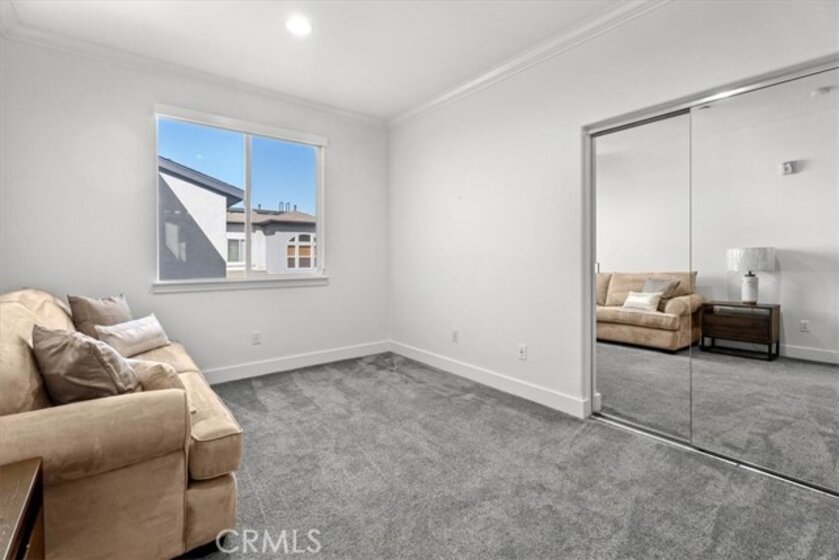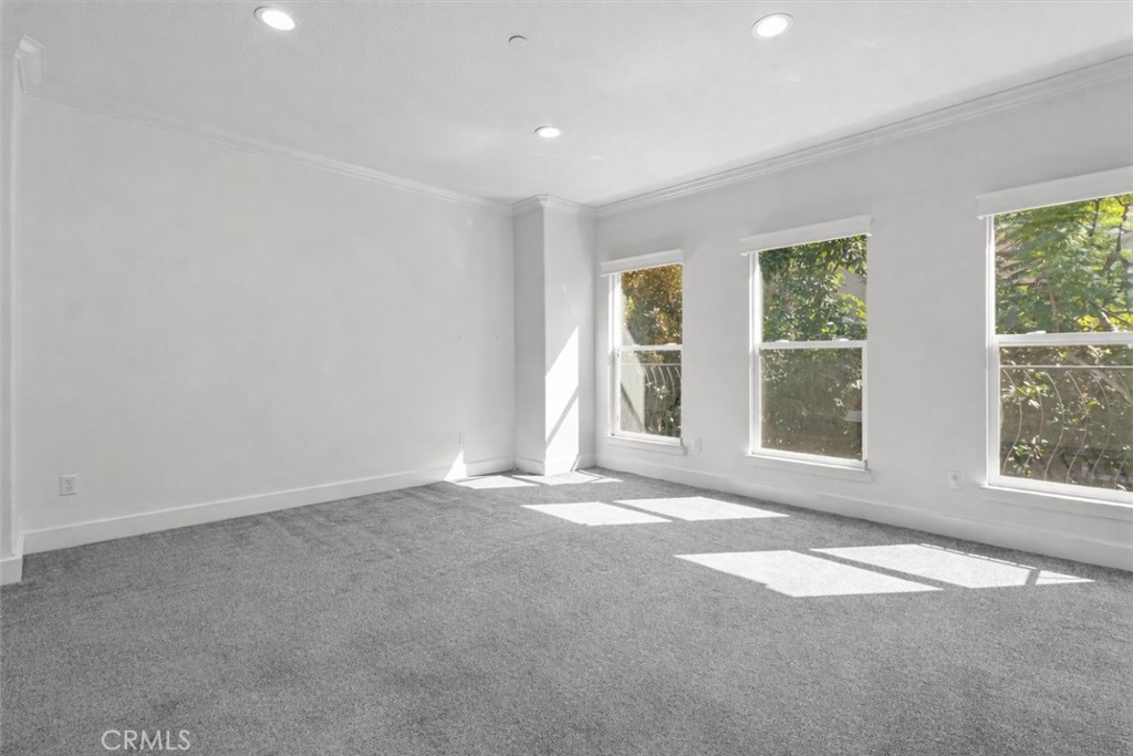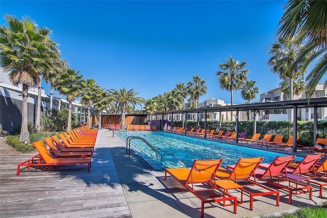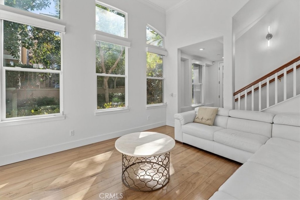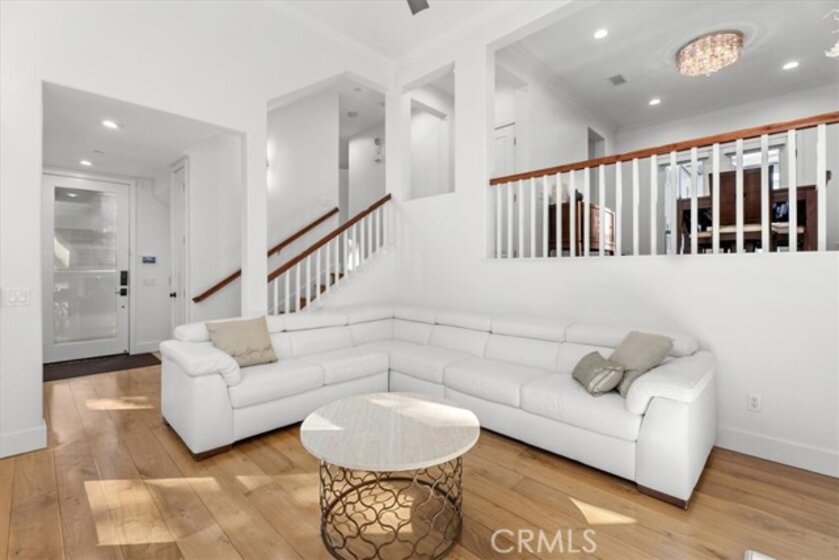 An exceptional opportunity to own a rare and spacious Playa Vista townhome offering over 3,200 square feet of light-filled living space and generously sized bedrooms, perfectly situated on a quiet street near Concert Park. A gated front patio welcomes you into a dramatic living room with soaring ceilings and a fireplace, creating a warm and inviting first impression. The formal dining room opens to a generous balcony for effortless indoor-outdoor entertaining, while the expansive family room flows seamlessly into the gourmet eat-in kitchen featuring quartz countertops, stainless steel appliances, a walk-in pantry, and a large center island. The primary suite offers a spa-style bath and dual closets. The other two bedrooms are perfectly appointed with their own full en-suite bathrooms, including a private third bedroom located on its own top-floor level alongside the open loft or office. This upper level features vaulted ceilings, tall windows, soft natural light, and beautiful tree views. The lower level includes a very large bonus room ideal for a home gym, creative studio, or indoor playroom, along with a custom laundry room featuring an additional storage closet. Adjacent is a double attached garage. The home is also equipped with a whole-house water softener. Enjoy the best of Playa Vista living just moments from pools and fitness centers, parks, Whole Foods, dining, shopping, and entertainment.