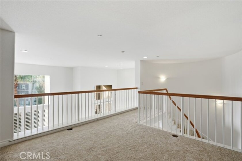 Experience elevated Playa Vista living in this striking two-story penthouse condo located in the sought-after Paraiso community. Built in 2003, this spacious 1,886 sq ft residence offers 2 bedrooms and 2.5 bathrooms with a dramatic, open layout designed to maximize light, volume, and indoor-outdoor flow. The main living level features soaring two-story ceilings, expansive windows, and a sophisticated living room with fireplace and custom built-ins, opening to a private balcony ideal for enjoying coastal breezes. The living and dining areas connect seamlessly to the chef’s kitchen, complete with stainless steel appliances, generous cabinetry, ample counter space, and a breakfast bar perfect for entertaining. A versatile upper-level loft overlooks the living space below and functions beautifully as an office, media room, or flex space. Downstairs, two generously sized bedrooms provide privacy and comfort. The primary suite includes a walk-in closet, private balcony, and spa-inspired en-suite bath with dual vanities, soaking tub, and glass-enclosed shower. Additional highlights include abundant natural light throughout, side-by-side laundry, distinctive architectural details, and two designated parking spaces. Enjoy resort-style Playa Vista living with access to The CenterPointe Club, The Resort, Runway shopping and dining, parks, and walking paths—offering the perfect blend of luxury, convenience, and vibrant community living.