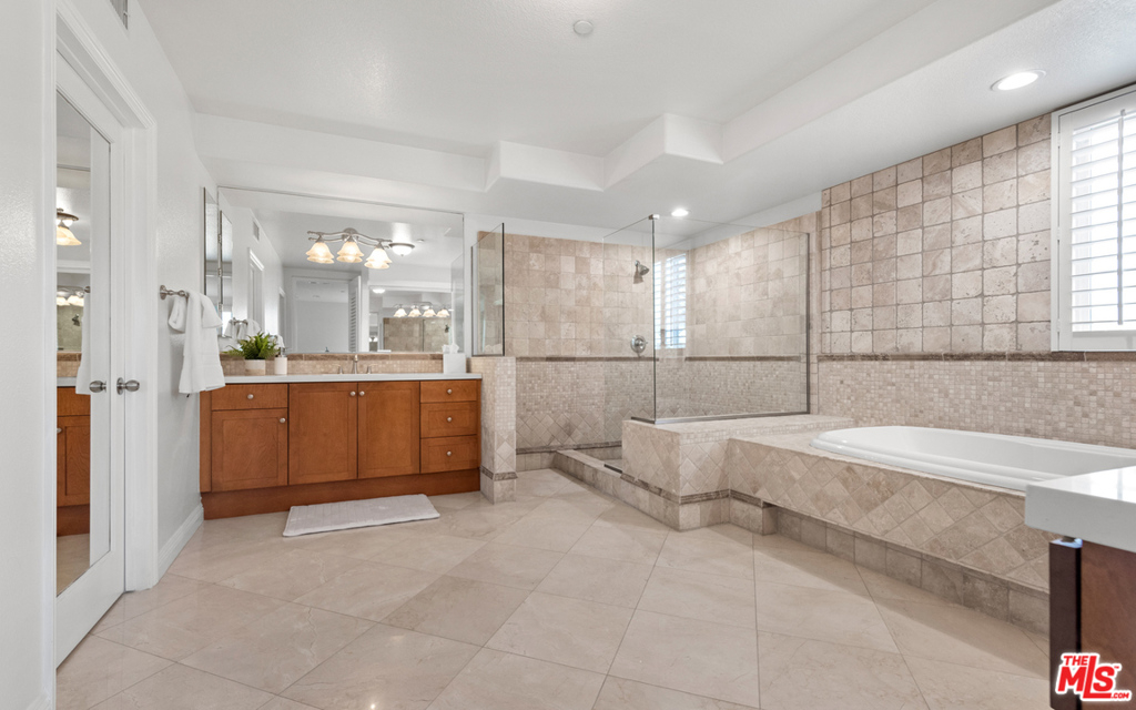 Premier penthouse style top floor, corner unit, with huge windows overlooking a park. 3 bedrooms +bonus open loft for home office or additional flex space. Enter on the living level and you are greeted by the natural light from 2 stories of windows. The open living room with fireplace leads to the formal dining and ultimately to the large kitchen with adjacent den. Distressed wood floors installed in 2019.Kitchen remodeled in 2021 with new counters and backsplash. The loft above the first floor is perfect for working from home, distance learning, or working out. The lower level is home to the three bedrooms and laundry area. The master suite has its own fireplace and large master bath with double vanities, tub and shower. Master bath also remodeled in 2021. Large walk in-closet completes the master retreat. Views to the Hollywood sign and the snow capped mountains. All of this in Playa Vista with access to parks, gyms, pools, movie theater, restaurants, shops, Whole Foods, bike paths to the beach, and more! Paraisos premier condo.