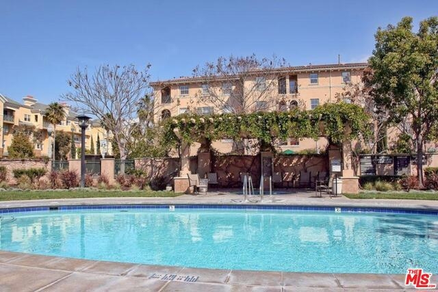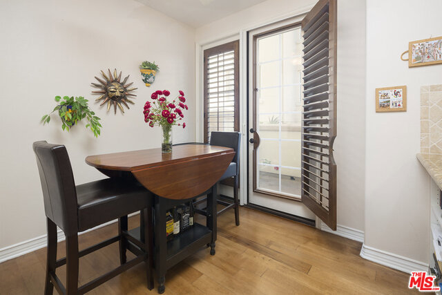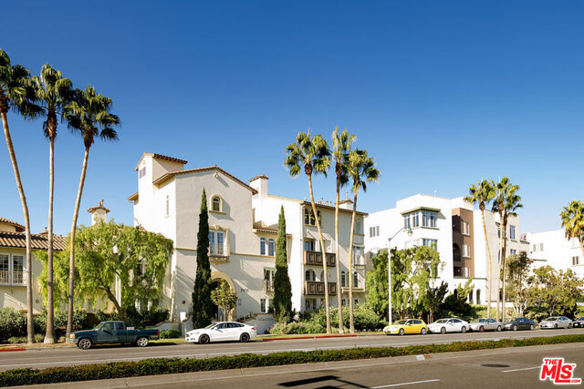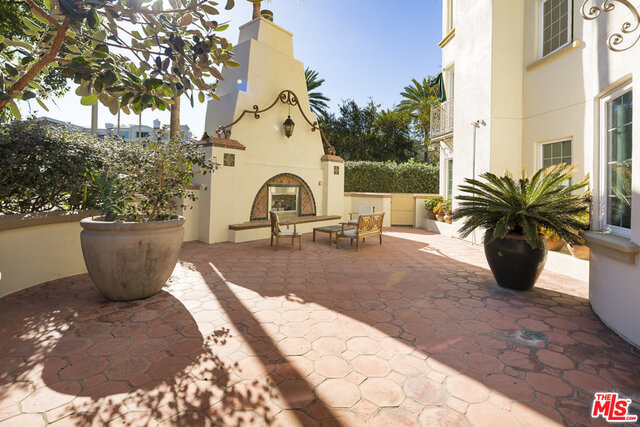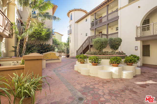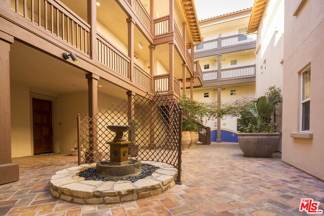 Rare floor plan in the elegant & intimate 39 unit Villa d'Este. Entry opens to large living room with fireplace and sunny, South-facing private patio overlooking the beautiful courtyard. Continue to kitchen featuring hardwood floors, white cabinets, granite countertops, breakfast nook, pantry, and another patio. Down the hall are an additional dining area and downstairs park-facing bedroom with third patio and full bathroom. Upstairs hallway features hardwood floors that lead to three more bedrooms (one is legally an office with built-in desk and shelving), two more full baths, and laundry room. Spacious master retreat has Juliet balcony and features en-suite bathroom with dual sinks and walk-in closet. Ample storage throughout and additional private storage unit in garage. Villa d'Este is located across the street from the Centerpointe Club and is a very short distance to numerous parks, Playa Vista Elementary School, Cinemark movie theater, and many exciting restaurants and shops.