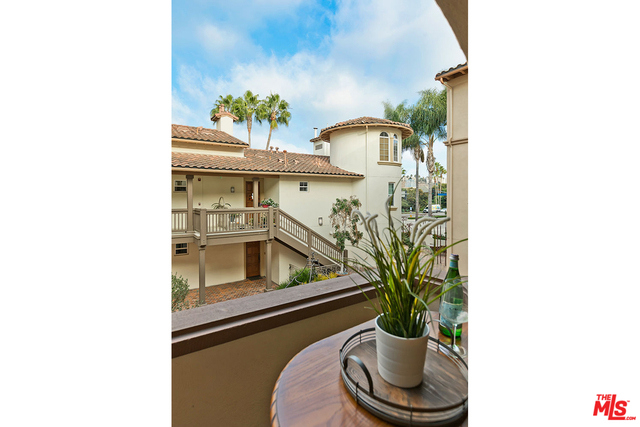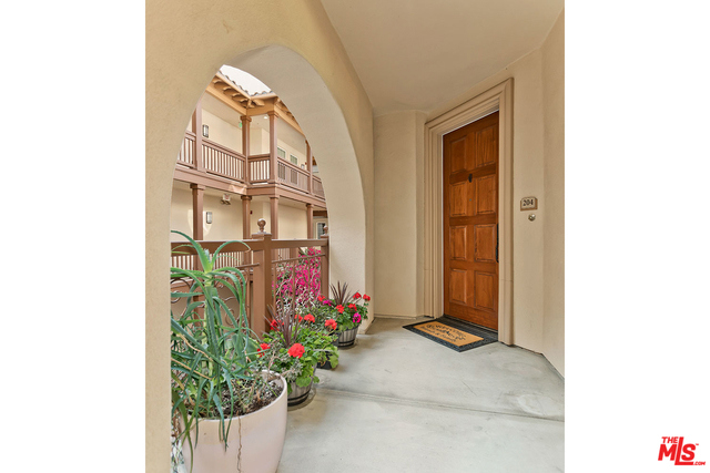 This serene condo is special. Set in the exclusive Villa D'Este, you'll share the classic SoCal life with just 38 neighbors, ensconced in Spanish Colonial architecture and Hacienda-style courtyards. This second-floor gem teems w/ charm. Listen to the sound of the outdoor fountain as you step into the tiled foyer. Thanks to East-facing arched windows, morning sun streams into the open-plan living area w/ cozy fireplace. The kitchen boasts quartz counters, newer SS appliances & breakfast bar. But the standout is the oversize 130 SF balcony, perfect for indoor-outdoor living, w/gas BBQ hookup and generous seating. Enjoy morning coffee, dinner w/ friends, or a sunset glass of wine in this airy, covered spot w/ peaceful courtyard views. The master suite boasts a large closet, fresh bath and separate shower w/ stone floor, and French doors to the balcony. 2nd bedroom w/bath. A short walk to gym & pool. With only one shared wall, this is a tranquil spot to retreat from the rigors of city life