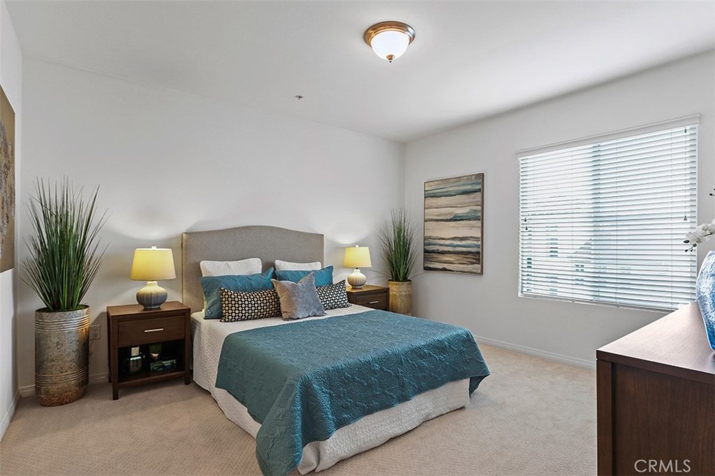Set the pace of your Playa Vista lifestyle in this inviting condo in the Tempo community! Enjoy attractive bluff views from the balcony of your 3rd floor corner unit. Spacious living room and dining area. Stylish kitchen features pantry closet, granite counter, and s/s appliances. The generous master suite includes two closets and a Caesarstone upgraded master bathroom with dual sinks, soaking tub, separate shower with luxury shower head and handheld sprayer; plus a separate commode room. The guest bedroom & bathroom are situated on the opposite side of the unit, for a touch of extra privacy. Laundry area has a handy countertop space for folding. Your new home will give you convenient access to Concert Park, groceries, exercise, restaurants and more. Playa Vista amenities include access to the Center Pointe Club and Resort pools and fitness facilities, library, parks, and school, as well as cable and high speed internet. Make your statement with your new charming, relaxing home!