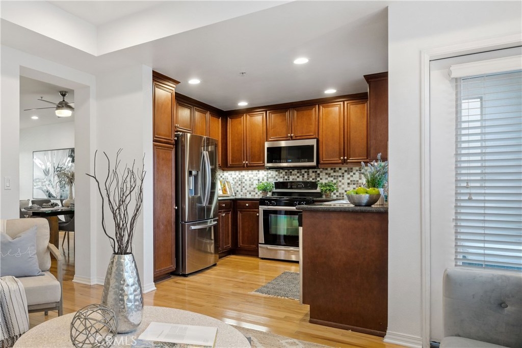 Welcome to popular Tempo - located in the tech-hub heart of Silicon Beach. This rare top-floor, end-unit townhome has 2 bdrms + 1 den (multipurpose room that can be easily turned into a 3rd bedroom, office, playroom, etc) and will delight you with its bright open-concept living area. The 2-story penthouse is spacious & beautiful w/hdwd floors in the main level which offers living & dining areas plus a small family rm adjacent to the kitchen. Warm wood tones & stainless appliances are a stunning match for granite counters. Enjoy the patio w/soothing courtyard fountain & share a romantic meal or relax w/a book & a beverage under the stars. 2 lower level en-suite bedrooms are separated by a flex-space office/den/fam rm. Primary bdrm has walk-in closet, spacious shower/separate soaking tub/dual sinks/private commode. 2nd en-suite bdrm has a lge closet & private bath. In-unit laundry also located on this level. Flexible floor plan w/2 multi-use rooms (1 up & 1 down) for you to make your own - home school, office, hobby rm, home gym, etc. Security-gated complex w/2 sep pkg spaces in security garage. Community amenities - pools, spa, fitness centers, basketball, playgrounds, parks, dog parks, clubhouse, conference center & more. Home to Google & FaceBook w/Whole Foods, Home Depot & a variety of shopping & dining within the community. Across the street from Concert Park & easy access to world-class beaches, marina, Westside, freeways and LAX. Tempo makes living easy and life is good!