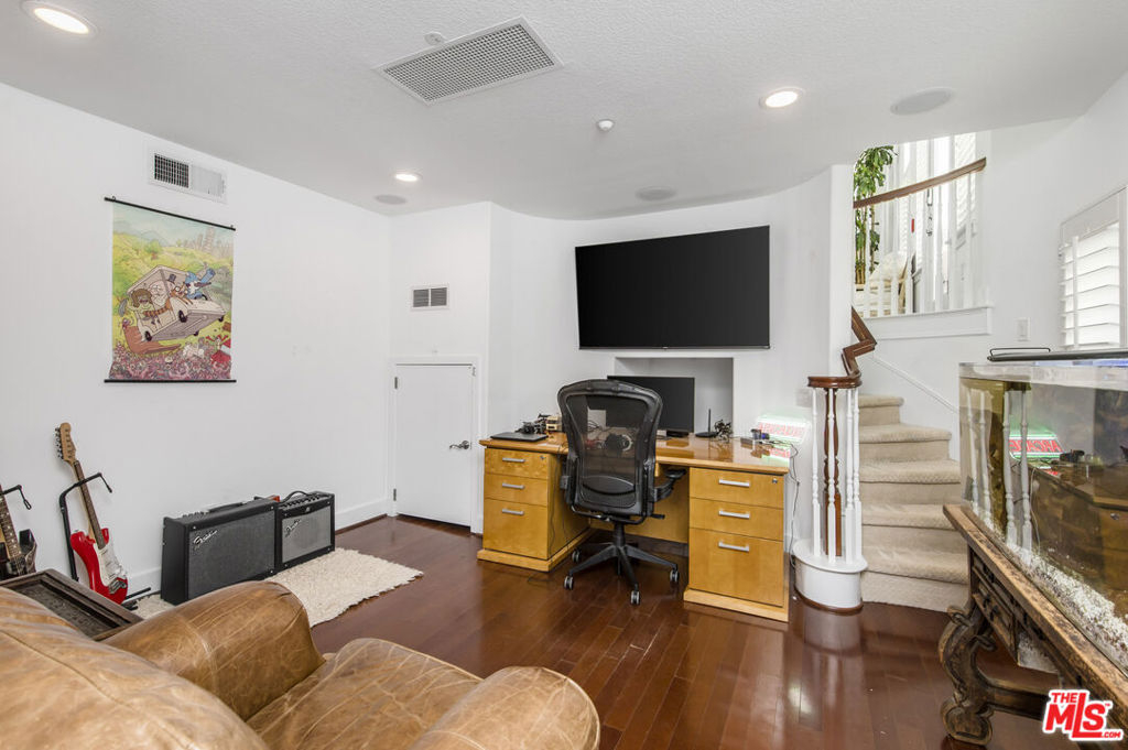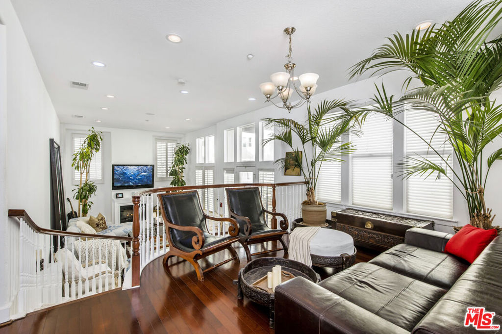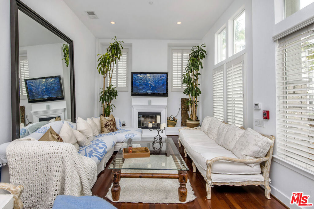 This Playa Vista split-level townhome is situated in a serene courtyard surrounded by lush landscaping and tranquil fountains, located in the Tapestry II community. The private walk-up entry brings you into an expansive living room with ultra high ceilings, abundant windows, and a cozy fireplace. A few steps up reveals an open dining/family room, a powder room, and a kitchen with a balcony and pantry. Additionally, a separate space that can be used as a sitting area or for dining. The top level has a luxurious primary suite with high ceilings, a walk-in closet, a cozy fireplace and a relaxing balcony. The spa bathroom has a soaking tub, double vanities, a water closet, and a large shower. The second bedroom has its own en-suite bathroom. This home has a private 2 car garage, a laundry room, and a downstairs flexspace a few steps down from the living room that can be used as an office, a rec room, or a 3rd bedroom. Recent upgrades include Philips lighting, a water filtration system, balcony resurfacing, and a new HVAC system and water heater. The Tapestry II community is perfectly situated close to a Whole Foods, coffee shops, restaurants for all tastes, boutiques, lush parks, sport courts, a Cinemark and The Resort which is a resident-exclusive state of the art fitness center with sparkling pools. Playa Vista HOAs include 2 resident-exclusive fitness centers, pools, lush parks, a beach shuttle, sport courts, community security, and the list goes on. Come see what everyone is talking about!