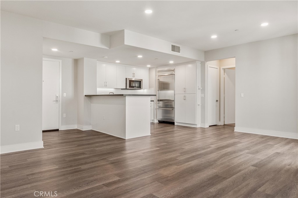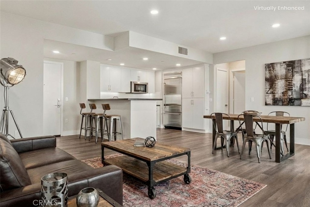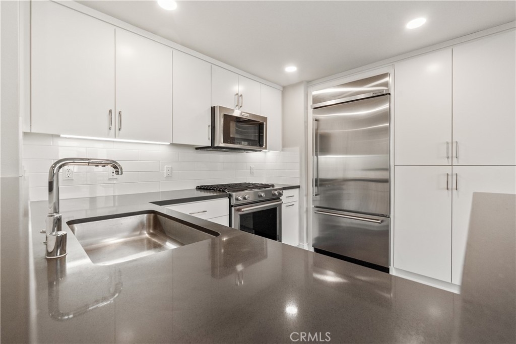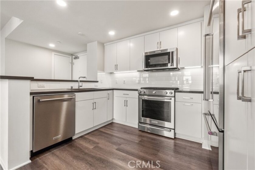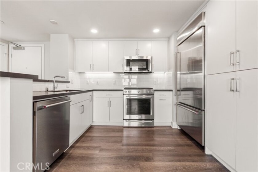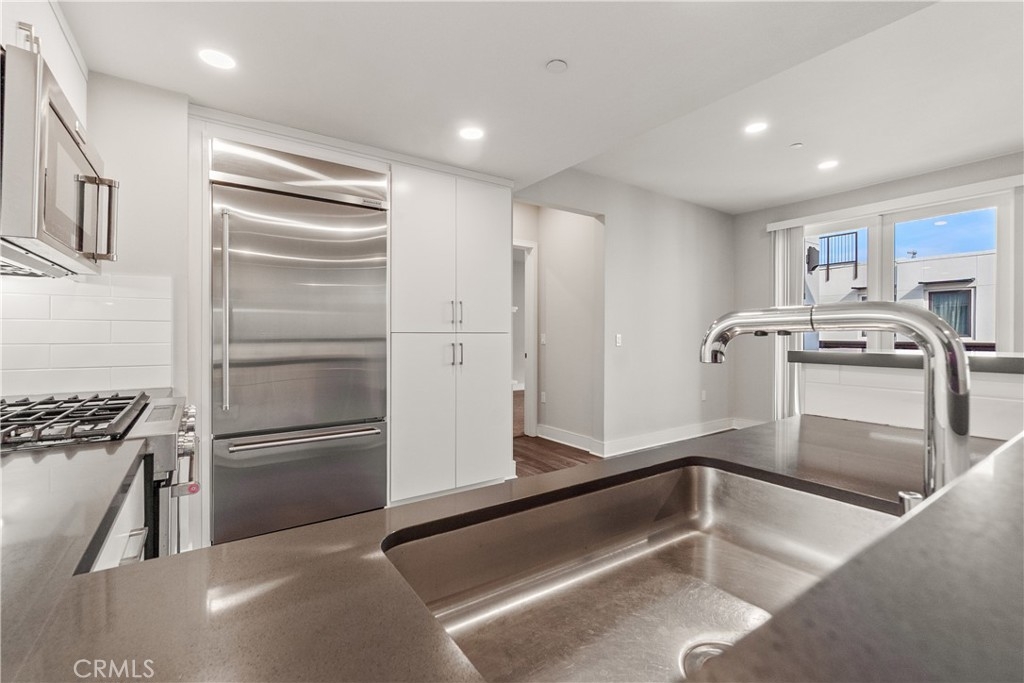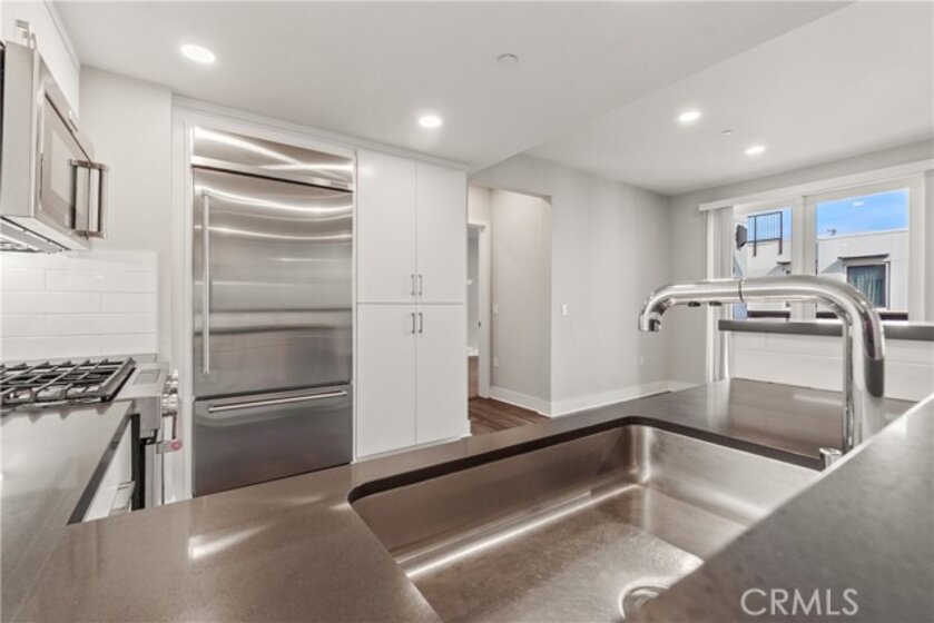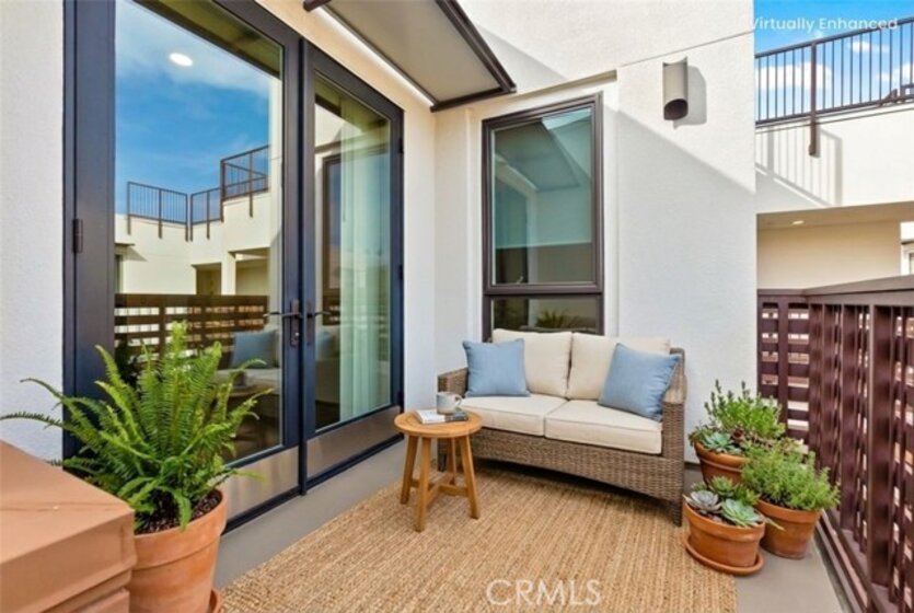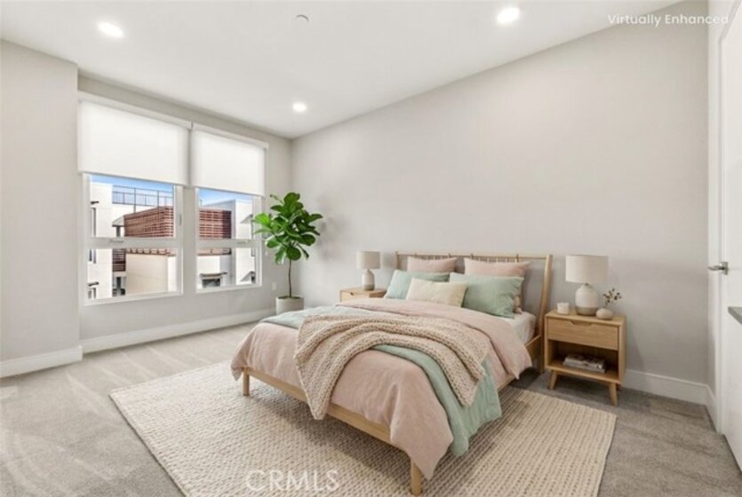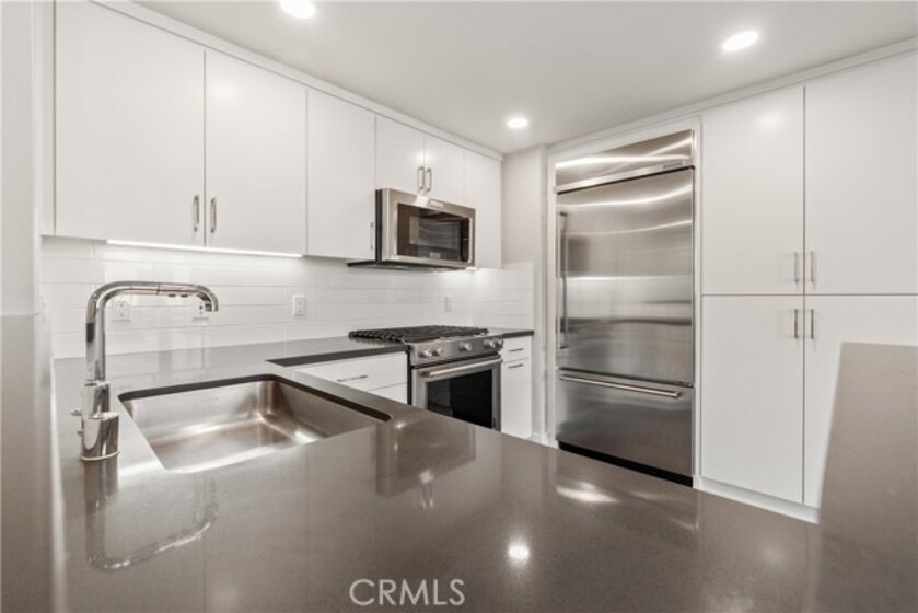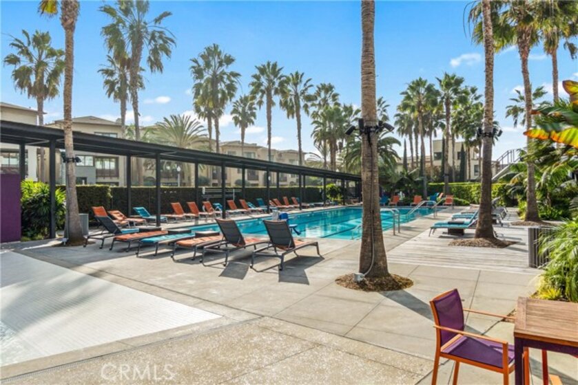 This Top-Floor End Unit residence is bright and beautifully situated, offering a pleasant view of the courtyard. The open-concept living, kitchen, and dining areas are filled with natural light, creating an inviting atmosphere perfect for both relaxation and entertaining. The sleek kitchen features quartz countertops, stainless steel appliances, a built-in refrigerator, and a spacious breakfast bar. Step outside to a private balcony overlooking the tranquil inner courtyard—an ideal spot for enjoying morning coffee or unwinding in the evening. The primary suite serves as a peaceful retreat, complete with a walk-in closet and an ensuite bathroom featuring a glass-enclosed walk in shower and dual sinks. Two additional bedrooms are thoughtfully located on the opposite side of the home for added privacy. Additional amenities include an in-unit laundry area with a full-size washer and dryer, private extra storage (approximately 10' x 7'), two subterranean side-by-side parking spaces, and access to EV charging. Residents can enjoy resort-style living with access to 2 fitness centers / gyms, pools, spas, and a clubhouse, all just moments away from Concert Park, Runway Playa Vista, shopping, dining, and the beach. There are several parks and playgrounds within Playa Vista. Some photos have been virtually staged.