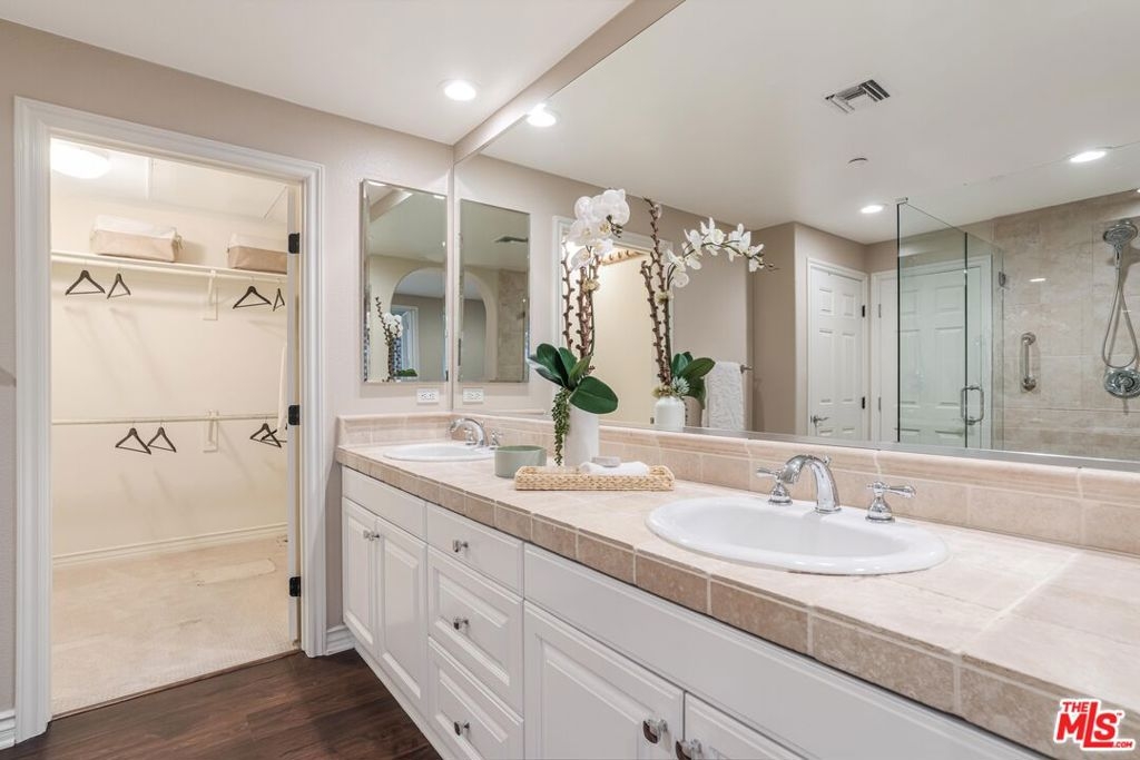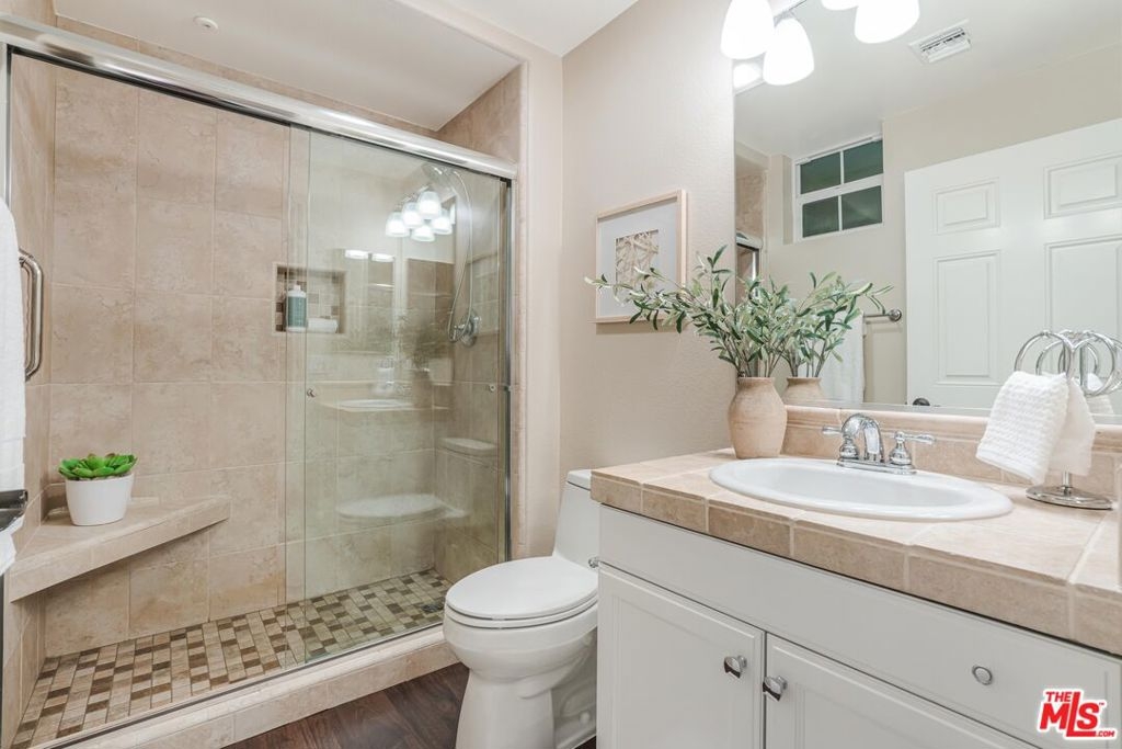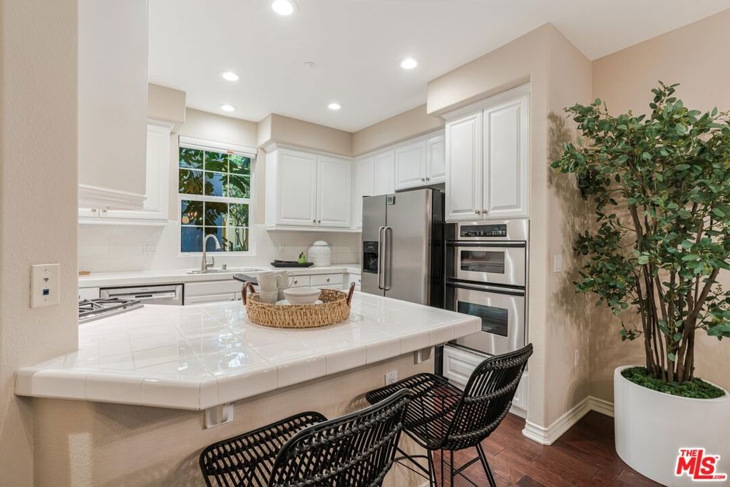 Welcome to a beautifully upgraded home in Playa Vista's sought-after Villa Savona community, where timeless Mediterranean charm meets modern comfort. This two-story residence offers 2 bedrooms, 2.5 bathrooms, and an office nook spread across 1,400 sq ft of thoughtfully designed living space. Villa Savona is an intimate building featuring three picturesque courtyards and stunning architecture. As you step inside, you'll be welcomed by an open layout that seamlessly connects the kitchen, dining, and living areas. The spacious living room, featuring beautiful hardwood floors, opens through French doors onto an entertainer's patio - perfect for al fresco dining or relaxing outdoors. A powder room and laundry area complete the first level. Upstairs, a dedicated office nook provides the perfect space to work from home. The primary bedroom is a peaceful retreat with its own private balcony. The fully renovated spa-like ensuite bathroom features dual vanities, a spacious shower, a walk-in closet, and additional storage. Just down the hall, the ensuite guest bedroom provides comfort and privacy, complete with its own newly renovated bathroom. Every bathroom in the home has been completely upgraded with modern finishes and high-end fixtures. This home is filled with even more thoughtful upgrades, including recessed lighting with dimmers, wooden shutters on all windows, an upgraded alarm system, a new water heater, and brand-new A/C units with updated thermostats. The two-car subterranean parking includes an EV charger and extra storage. Villa Savona is ideally located just two blocks from Playa Vista Elementary School and directly across the street from the Playa Vista CenterPointe Club, featuring a gym, pool, spa, and screening room. Nearby, enjoy The Resort gym and pool, as well as Runway at Playa Vista, home to Whole Foods, Cinemark Movie Theater, restaurants, and shops.